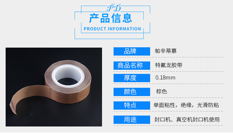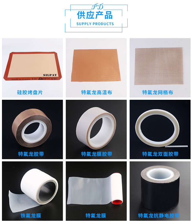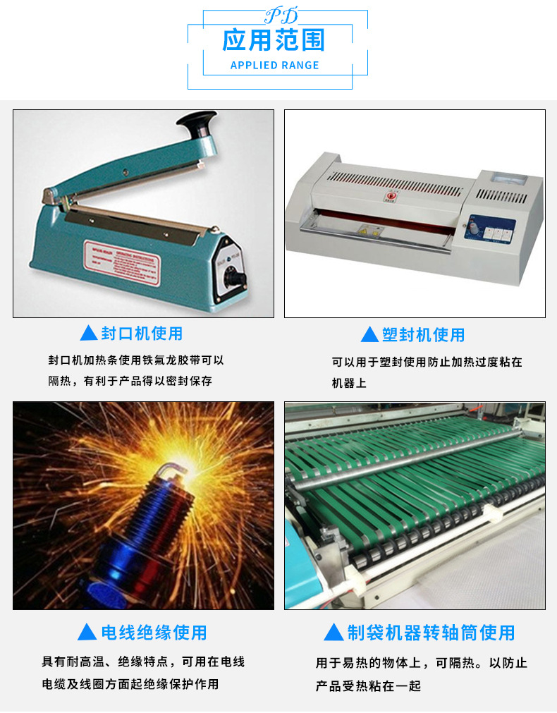 帕辛蒂慕專注優(yōu)質(zhì)PTFE鐵特氟龍食品包裝封口機(jī)防粘耐酸堿絕緣耐高溫高溫布膠帶